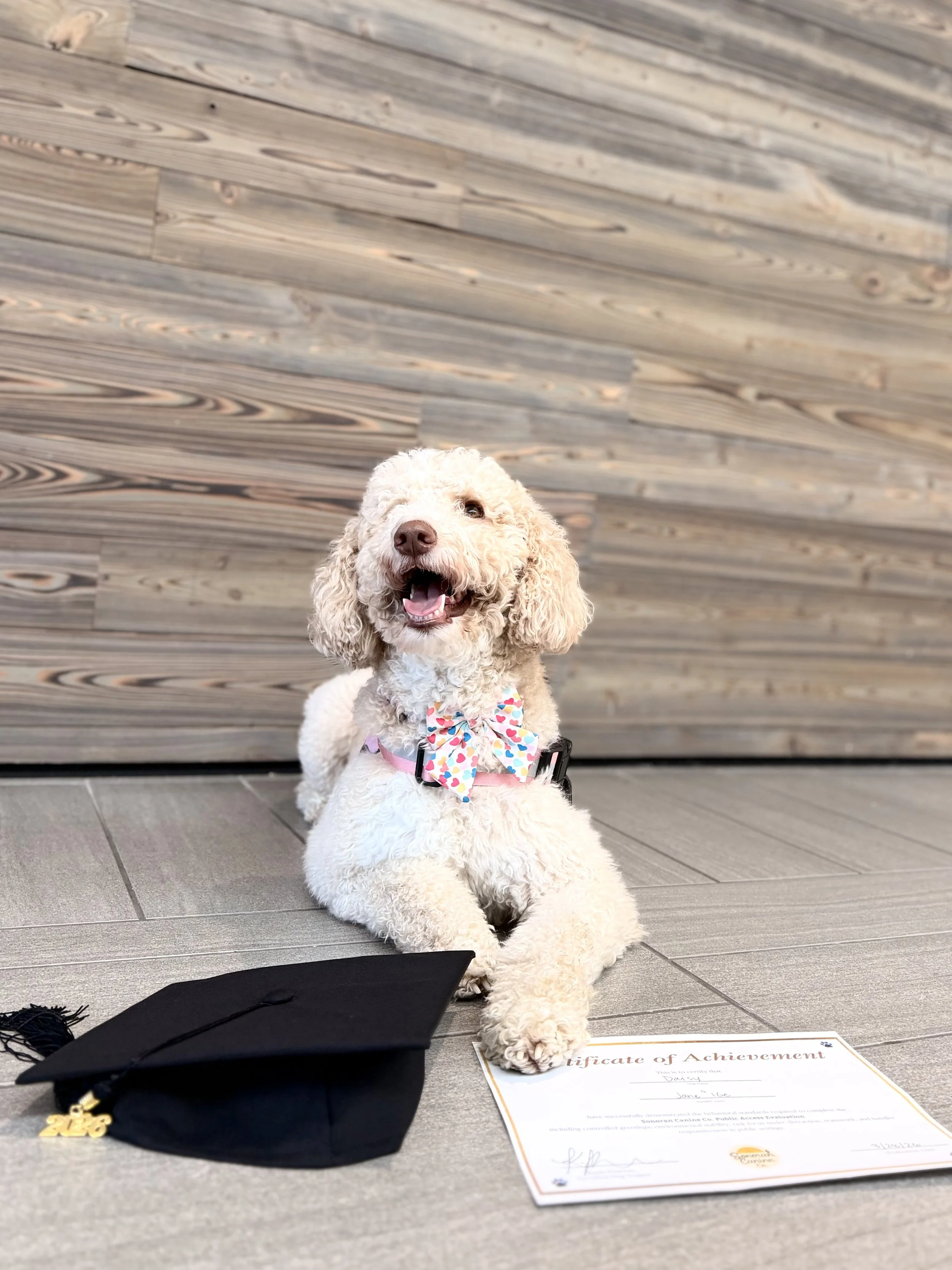 Your dog lives with me. Full-time task development, public access conditioning, and behavioral foundation work in a real home environment. If your candidate is a puppy, this includes all basic puppy manners. If your candidate is an adult and does not have CGC, please note that basic CGC capabilities will be taught first. PSD Board + Train is just the first step to owning a fully trained service dog. Full training can take up to 2 years or more.